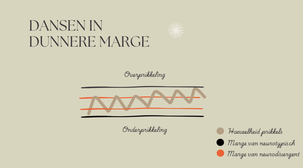 Als neurodivergent heb je vaak een smaller speelveld tussen onder- en overprikkeling (zie afbeelding). Het vraagt om scherp afstemmen van je werk en leven op wie jij bent. Maar doe je dat, dan kom je in een flow waarin verveling nauwelijks nog ruimte krijgt.